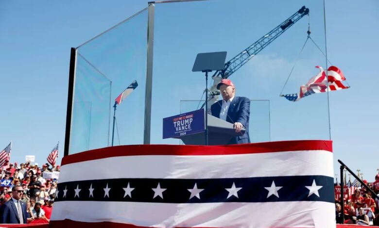 Donald Trump estrenó un muro blindado a 8 días del atentado que vivió en Florida; en entrevista adelantó que será su último intento para ser presidente