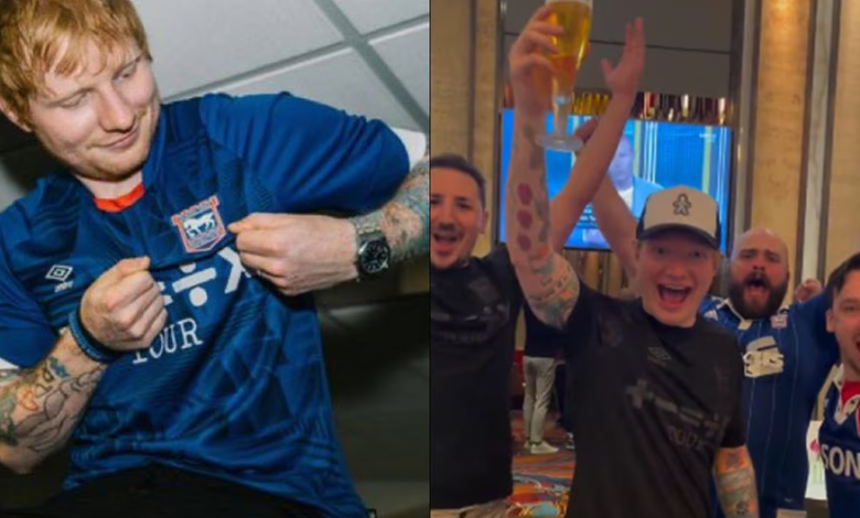 Redacción Xalapa.- El cantante Ed Sheeran, aficionado del Ipswich Town, celebró el triunfo de su equipo, que el pasado sábado aseguró su ascenso a la Premier League.