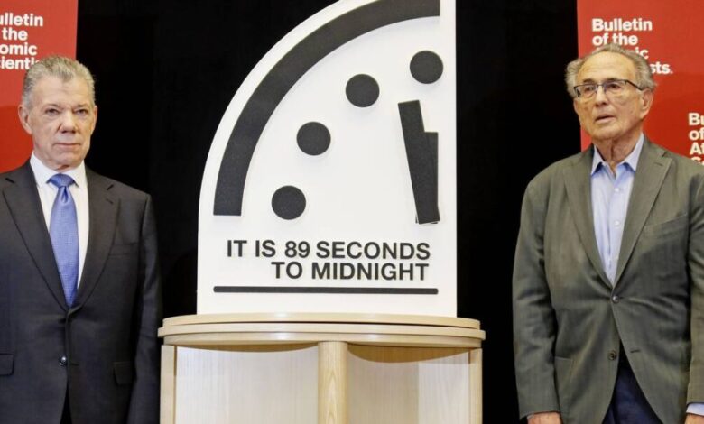 “El Reloj del Apocalipsis está más cerca de la catástrofe que nunca en su historia”, dijo el expresidente colombiano Juan Manuel Santos, director de The Elders, un grupo de exlíderes.
