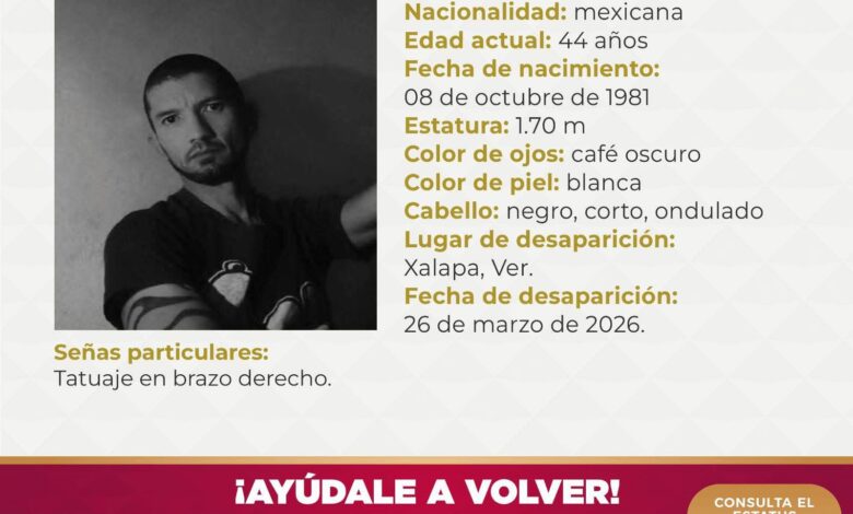De acuerdo con la ficha oficial de búsqueda, Sergio Luis Ordóñez Morales fue visto por última vez el 26 de marzo de 2026, y el reporte de desaparición fue formalizado el 7 de abril del mismo año. El caso quedó registrado bajo un folio único de identificación y es investigado por la Fiscalía General del Estado de Veracruz.