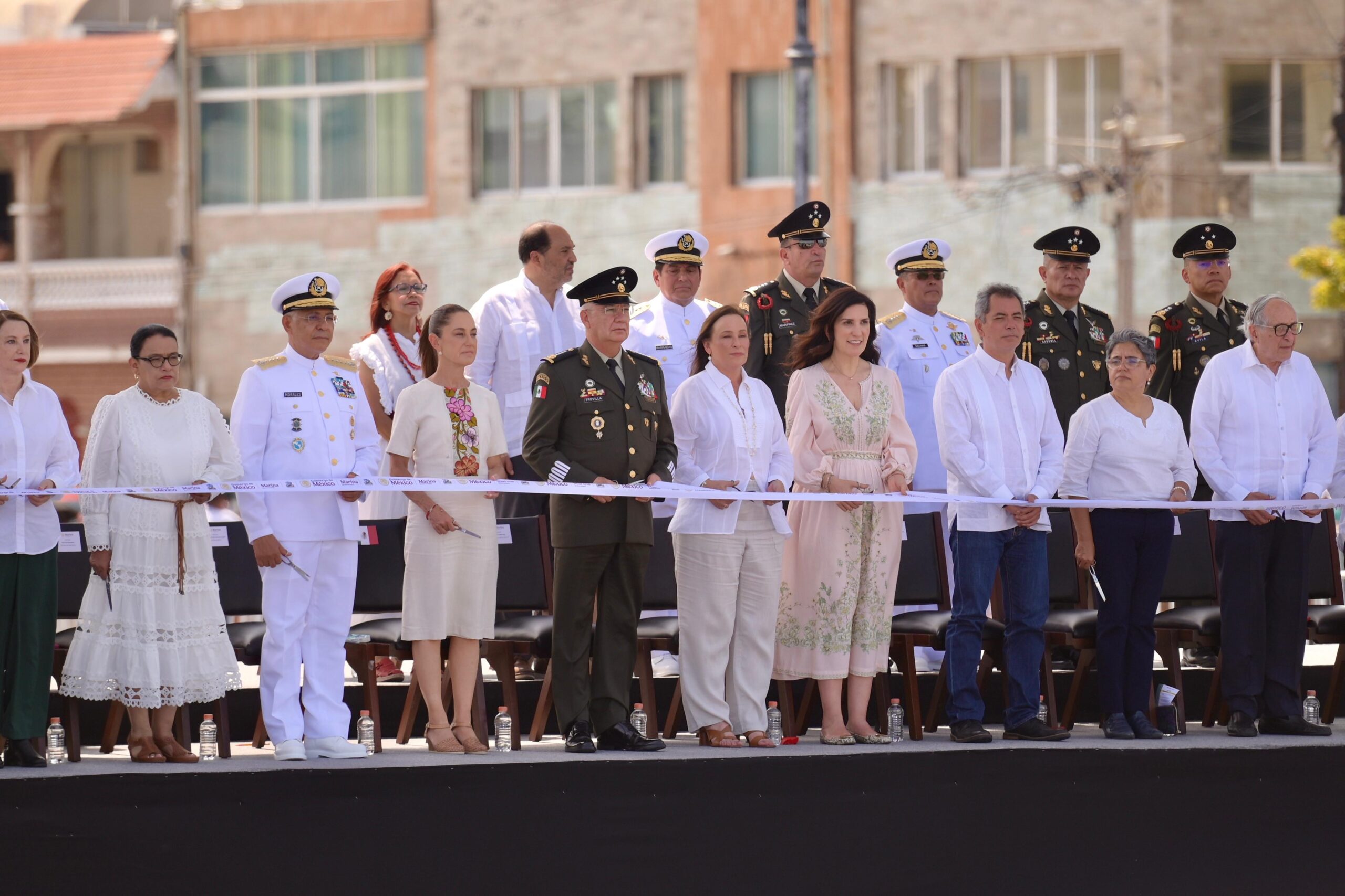 Durante el evento, la presidenta también inauguró la Plaza del Heroísmo Veracruzano. Además de su gabinete legal y ampliado, asistieron el presidente de la Corte, Hugo Aguilar; la presidenta de la Cámara de Diputados, Kenya López Rabadán; y la presidenta del Senado, Laura Itzel Castillo.