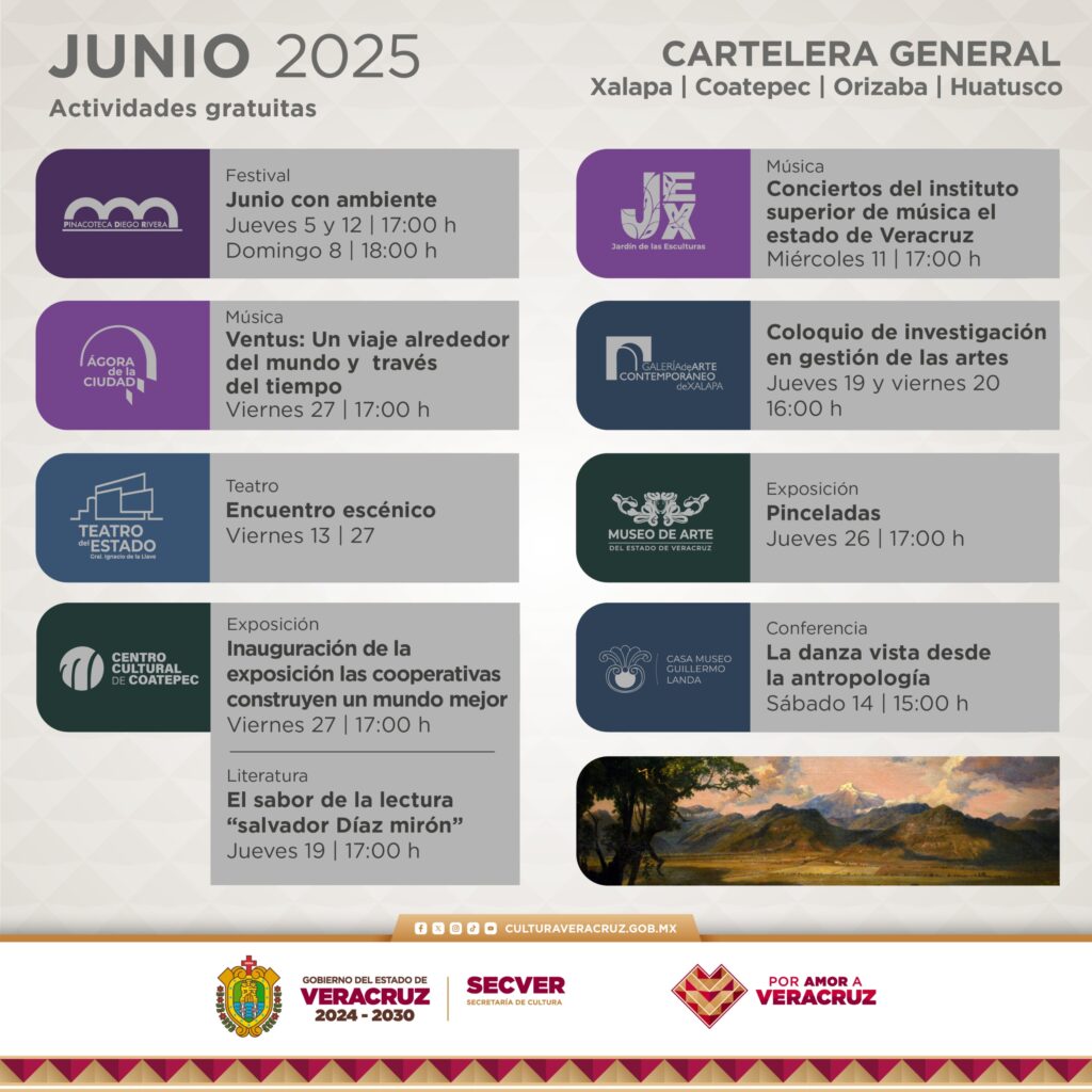 La Secretaría de Cultura de Veracruz (SECVER) invita a participar en las actividades que se realizarán durante junio en sus recintos culturales, dirigidas al público de todas las edades.