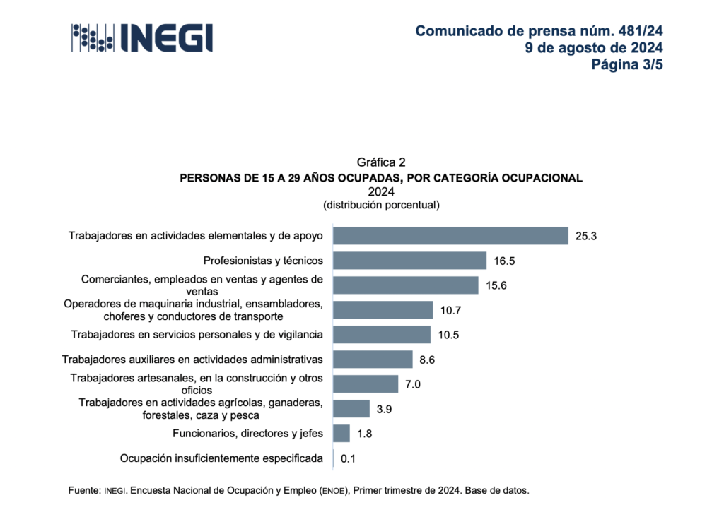 Poco más de la mitad de los jóvenes en México deben trabajar, el 16 por ciento está ocupado, la mayoría en actividades asalariadas, cuyos ingresos utilizan para sostener sus estudios. El 60 por ciento de ellos está estudiando la prepa.
