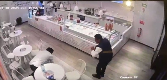 En un video que circula en redes sociales se muestra cómo el secretario particular de Irma Leticia se encuentra en una cafetería y llegan dos hombres; uno de ellos lo apunta con una pistola mientras que el otro se lleva sus pertenencias, entre ellas una mochila y dos celulares que se encuentran en una mesa.