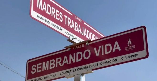 Con calles nombradas como “Me canso ganso”, “Becas Benito Juárez”, “Sembrando Vida” y “Salario Mínimo”, entre otros, nació a finales de noviembre la colonia “Cuarta Transformación” en el municipio de Tultitlán, con las que el ayuntamiento unió las colonias Fimesa I y Lomas del Parque Segunda Sección y las convirtió en una sola llamada ‘La Cuarta Transformación’.