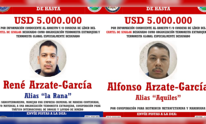 El Gobierno de Estados Unidos anunció este jueves recompensas de hasta cinco millones de dólares por cada uno de los hermanos René y Alfonso Arzate-García, señalados como operadores del Cártel de Sinaloa en Tijuana, Baja California.
