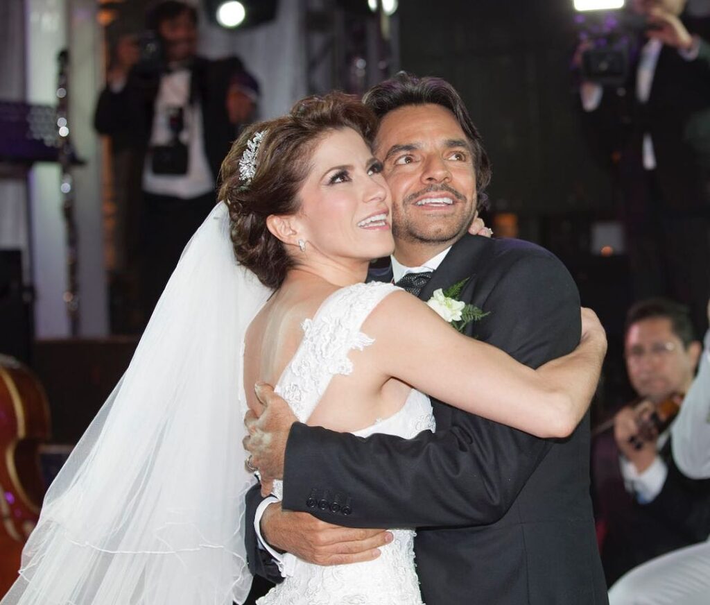 Ambos famosos mexicanos se casaron el 7 de julio del 2012 en la Parroquia Regina Coeli en el Centro Histórico de la CDMX acompañado de sus hijos, Aislinn, Vadhir y José Eduardo, también amigos famosos de Eugenio, como Consuelo Duval, Regina Blandón, Omar Chaparro y Adal Ramones.