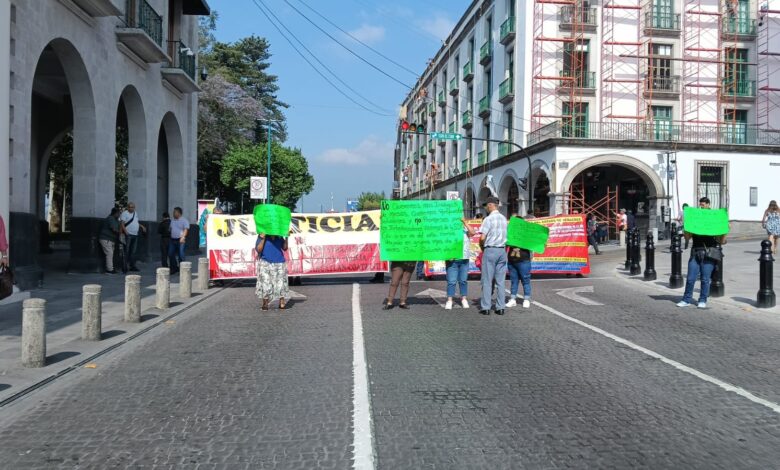 Juan David Castilla/Xalapa. Exintegrantes y familiares de la desaparecida Policía Intermunicipal Poza Rica-Tihuatlán-Coatzintla (PIPTC) bloquearon la calle Juan de la Luz Enríquez, frente al Palacio de Gobierno, para denunciar un estancamiento judicial que suma ya siete años y exigir el cumplimiento de pagos pendientes.