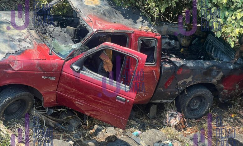 Fallecen calcinadas tres personas y 4 más resultaron lesionadas tras volcadura e incendio de camioneta en Trapiche del Rosario