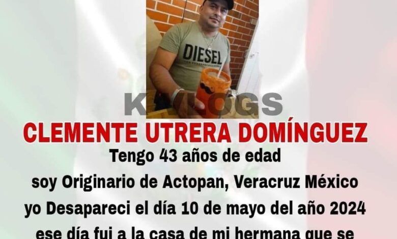 Juan David Castilla.- María Fernanda Guevara Jiménez busca a su esposo Clemente Utrera Domínguez, cuya desaparición se reportó desde hace más de un mes en el municipio de Actopan, en la zona costera central del estado de Veracruz.