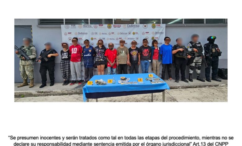 Fueron detenidos Efraín “N”, María Enriqueta “N”, Tony Francisco “N”, Ramón “N”, Carlos Alberto “N”, Víctor “N”, Alejandra Yamileth “N”, Martín “N”, Erick Daniel “N” y Naomi Yoselin “N”.