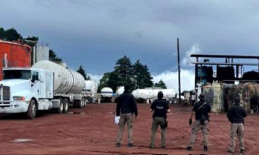 Además, fueron confiscados 64 vehículos, incluyendo pipas, tractocamiones, motocicletas y maquinaria pesada, así como 3 cisternas y múltiples contenedores cilíndricos.