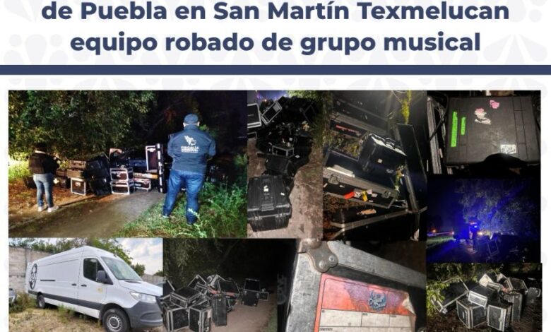 Carlos Guzmán | Corresponsal CDMX.- Como resultado de labores de inteligencia y de campo, la Fiscalía General del Estado de Puebla recuperó en la comunidad de San Rafael Tlanalapan, perteneciente al municipio de San Martín Texmelucan, instrumentos y equipo de audio propiedad de una agrupación musical, reportados como robados en Ixtapaluca, Estado de México.