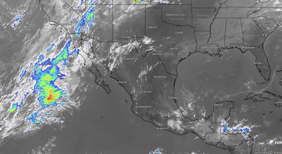 De acuerdo con la información, un nuevo frente frío (núm. 24) ingresará a Baja California, en combinación con una vaguada en niveles medios y altos de la atmósfera, la corriente en chorro polar y un río atmosférico, generarán descenso de temperatura en el noroeste del territorio nacional, así como lluvias puntuales fuertes en Baja California; adicionalmente lluvias y chubascos en Baja California Sur, Sonora y Chihuahua.