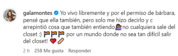 «Yo vivo libremente y por el permiso de Bárbara, pensé que ella también, pero solo me hizo decirlo y se arrepintió cosa que también entiendo no cualquiera sale del clóset. Por un mundo donde no sea tan difícil salir del clóset»