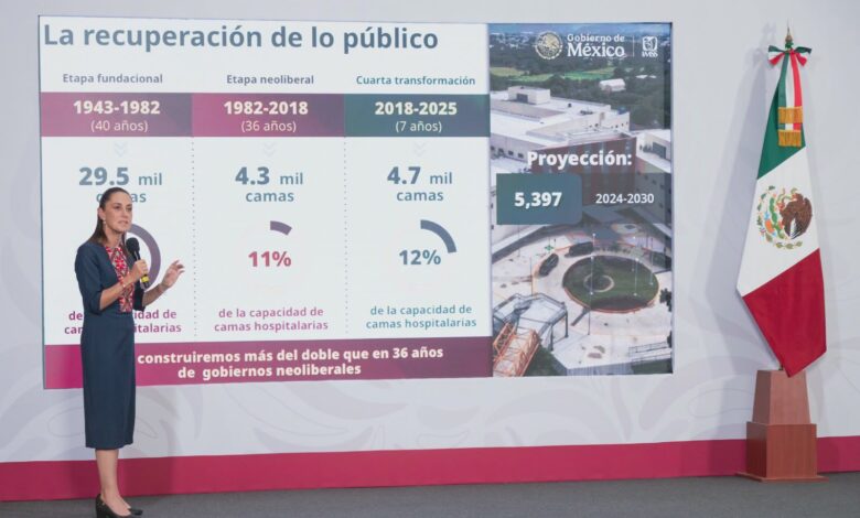 Sheinbaum adelantó que la meta de su gobierno es alcanzar 12 mil nuevas camas en un periodo de 12 años, como parte del fortalecimiento del sistema de salud pública.