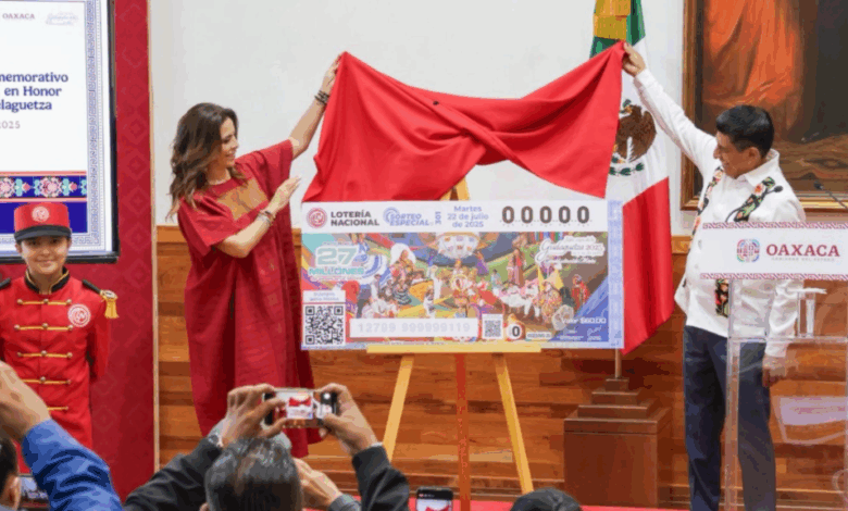 La Lotería Nacional anunció que el Sorteo Especial No. 301 tendrá como imagen la tradicional Guelaguetza y se celebrará el 22 de julio en Oaxaca. El gobernador Salomón Jara Cruz y la directora general Olivia Salomón presentaron el billete conmemorativo en el Palacio de Gobierno de Oaxaca.-