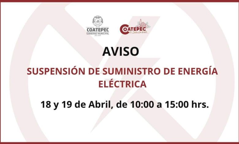 Habrá cortes de luz en Coatepec durante estas fechas
