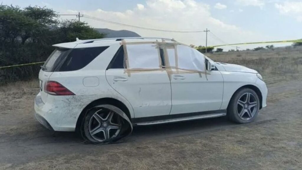 Por otro lado, la camioneta era una Mercedes Benz blanca, varias de sus ventanas tenían cartulinas en lugar de cristales, contaba con llantas ponchadas y placas del estado de Morelos.