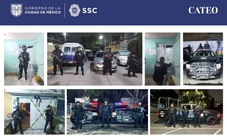 En el mismo inmueble ubicado en la alcaldía Álvaro Obregón, donde se realizó el cateo, fueron asegurado cuatro platas con reporte de robo, 14 placas de circulación.