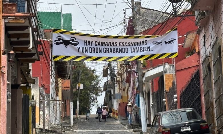 “Hay cámaras escondidas y un dron grabando también”, es parte de la advertencia que se lee sobre dicha arteria vehicular, entre la calle Benito Juárez y la avenida Manuel Ávila Camacho.
