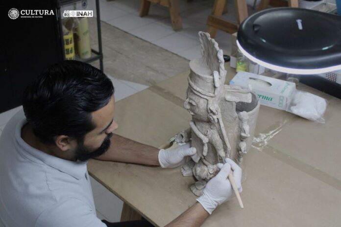 ⇒ Dicha labor se realiza en los laboratorios de restauración que fueron concebidos a partir de 2021, por la Dirección de Salvamento Arqueológico del Instituto Nacional de Antropología e Historia (INAH), dependencia de la Secretaría de Cultura del Gobierno de México.