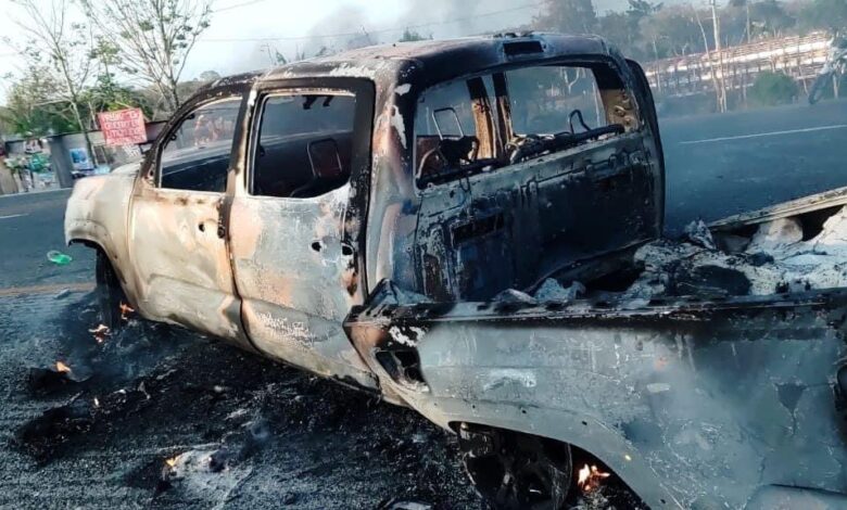 También se reportaron impactos por arma de fuego en vehículos de carga, particulares y del transporte público, aparte de los 4 vehículos, se reportó que un camión también fue incendiado