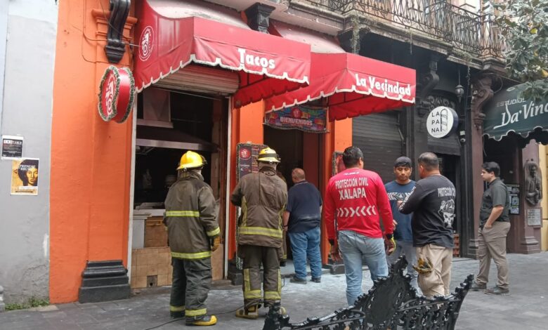 Incendio por cortocircuito en taquería del centro de Xalapa desata movilización