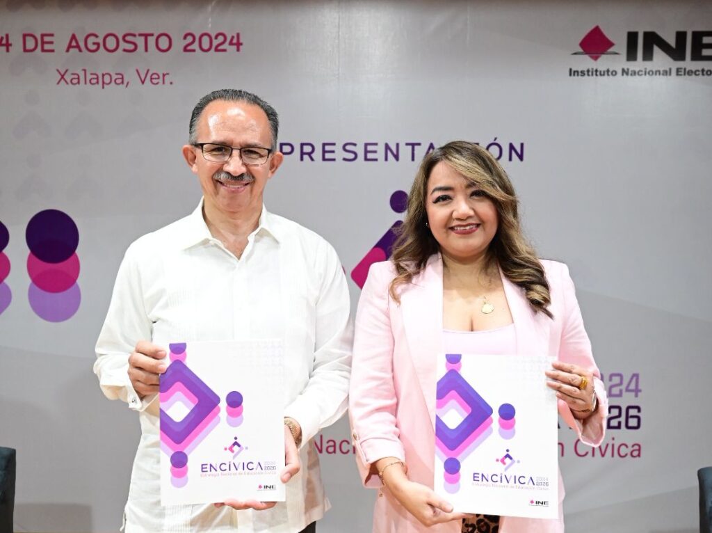 Xalapa, Veracruz, 14 de agosto de 2024. El Instituto Nacional Electoral (INE), a través de la Junta Local Ejecutiva del INE en el Estado de Veracruz, y de manera conjunta con el Organismo Público Local Electoral del Estado de Veracruz (OPLE Veracruz) presentaron la «Estrategia Nacional de Educación Cívica» (ENCÍVICA) 2024-2026, la cual se focaliza hacia la construcción de una ciudadanía integral.
