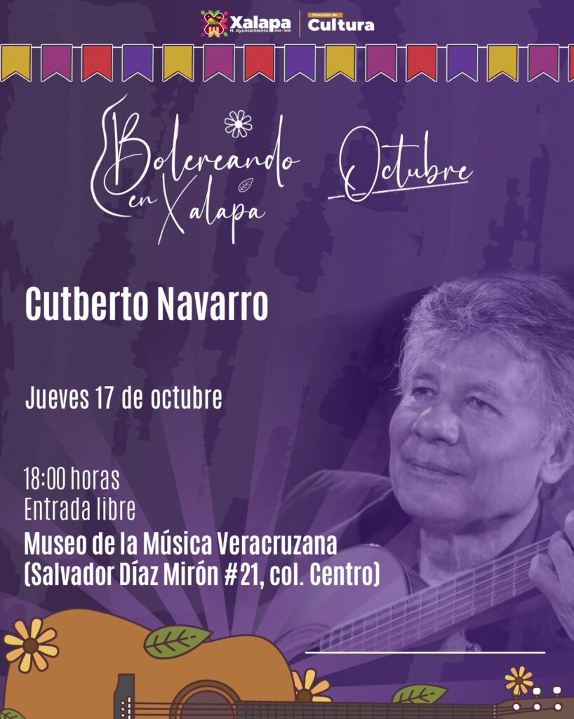El maestro Cutberto Navarro Piedra interpretará una selección musical para los amantes de la música romántica como parte de su proyecto musical “Al rescate del Bolero”, este jueves 17 de octubre a las 18:00 horas y estará acompañado en el requinto por Domitilo Morales del Ángel.