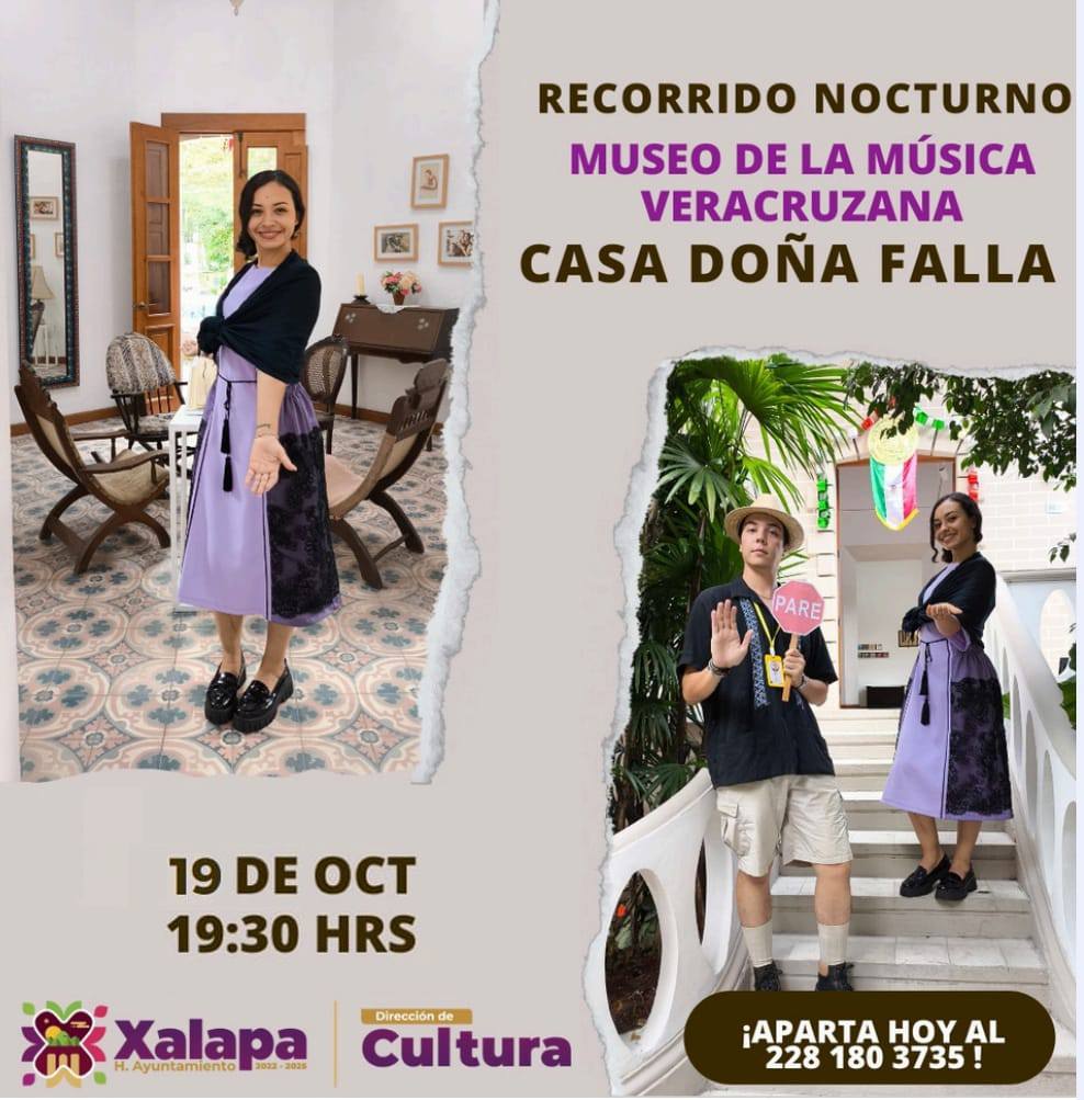 En esta ocasión se da inicio a los recorridos nocturnos “Noches de Museo”, este sábado 19 de octubre a las 19:30 horas, donde los visitantes tendrán la oportunidad de conocer, mediante una propuesta escénica, una faceta más personal de la antigua propietaria de esta casa “Doña Falla”.