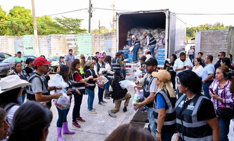 Xalapa, Ver., 20 de octubre de 2025.- Más de 10 mil despensas, siete mil kits de limpieza, y mil tinacos entregaron diputadas y diputados locales en los municipios de Coatzintla y Poza Rica, donde se sumaron a los trabajos de limpieza, remoción de escombros, descarga y entrega de apoyos a las personas damnificadas por las recientes lluvias.