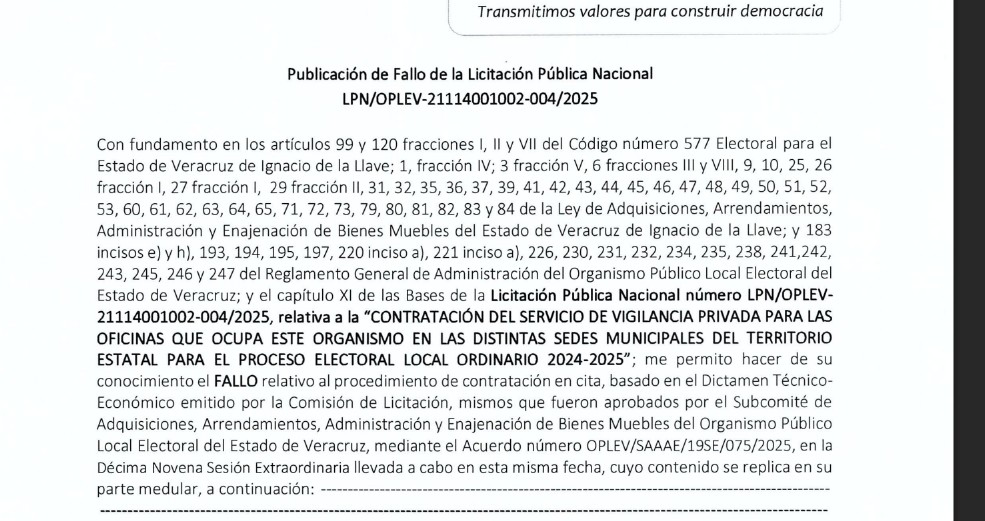 Isabel Ortega. Xalapa, Ver.- A través de una licitación el Organismo Público Local Electoral (OPLE) determinó que la empresa xalapeña Cima-Serco, Seguridad Privada y Confiabilidad S.A. de C.V., será la responsable de la seguridad y vigilancia en los 212 consejos municipales.