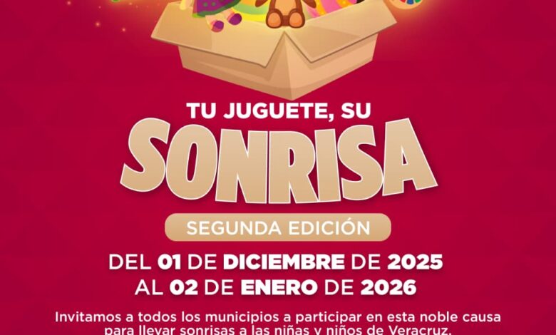 Xalapa, Ver., martes 02 de diciembre de 2025.- El Sistema Estatal para el Desarrollo Integral de la Familia (DIF) invita a instituciones, empresas y familias veracruzanas a sumarse a la colecta Tu Juguete, Su Sonrisa, una iniciativa que busca llevar alegría, esperanza e inspiración a niñas y niños que viven en condiciones de alta vulnerabilidad.