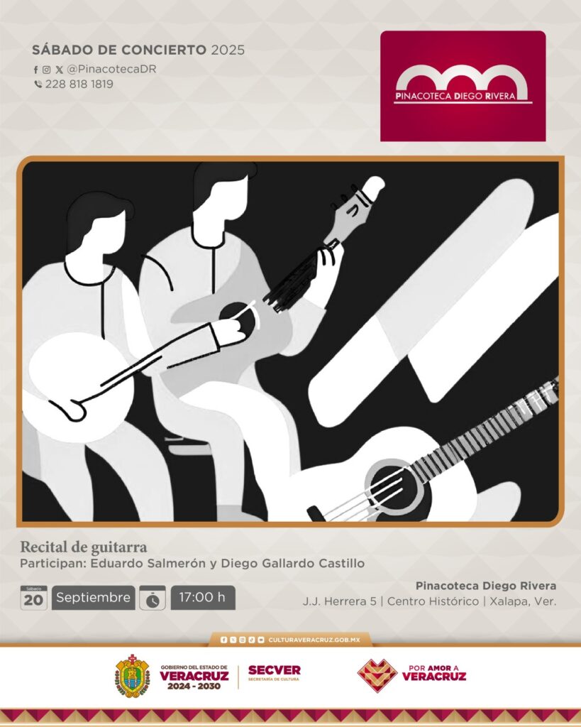 Además, el sábado 20, a las 17:00 horas, los jóvenes guitarristas Eduardo Salmerón y Diego Gallardo Castillo ofrecerán recital de guitarra clásica con entrada gratuita.