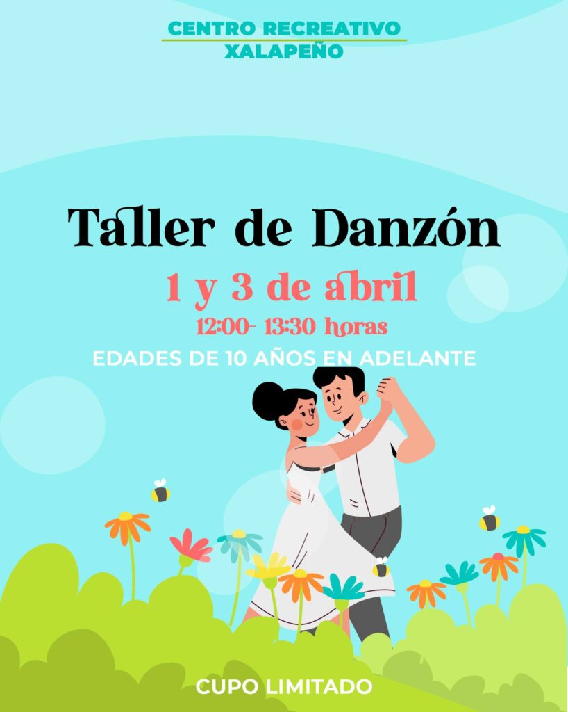 Los talleres se llevarán a cabo del 01 al 04 de abril en el Centro Recreativo Xalapeño, Biblioteca Nieves y Auditorio IMAC. El 1 y 3 de abril, de 12:00 a 13:00 horas, se realizará el taller de Danzón para personas de 10 años en adelante en el Centro Recreativo Xalapeño (CRX).