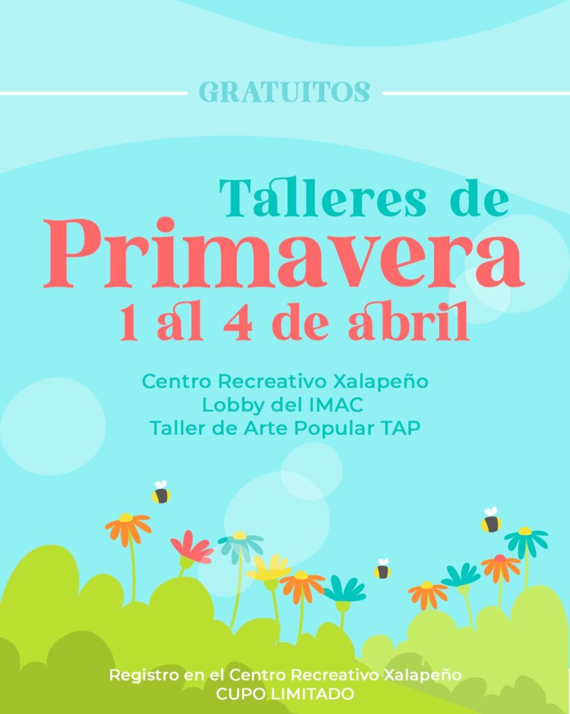 Redacción Xalapa.- A través de la página oficial de Cultura Xalapa, se invitó al público en general a participar en los diversos talleres de primavera para este mes de abril en Xalapa.