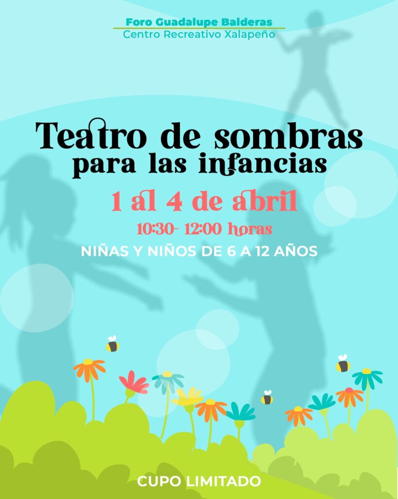 Del 1 al 4 de abril, el público mayor de 10 años podrá participar en el taller de malabares en el CRX de 09:00 a 10:30 horas. Además, estos mismos días, pero de 10:30 a 12:00 horas en Foro Gudalupe Balderas del mismo centro, los niños de 6 a 12 años podrán disfrutar del teatro de sombras para las infancias.