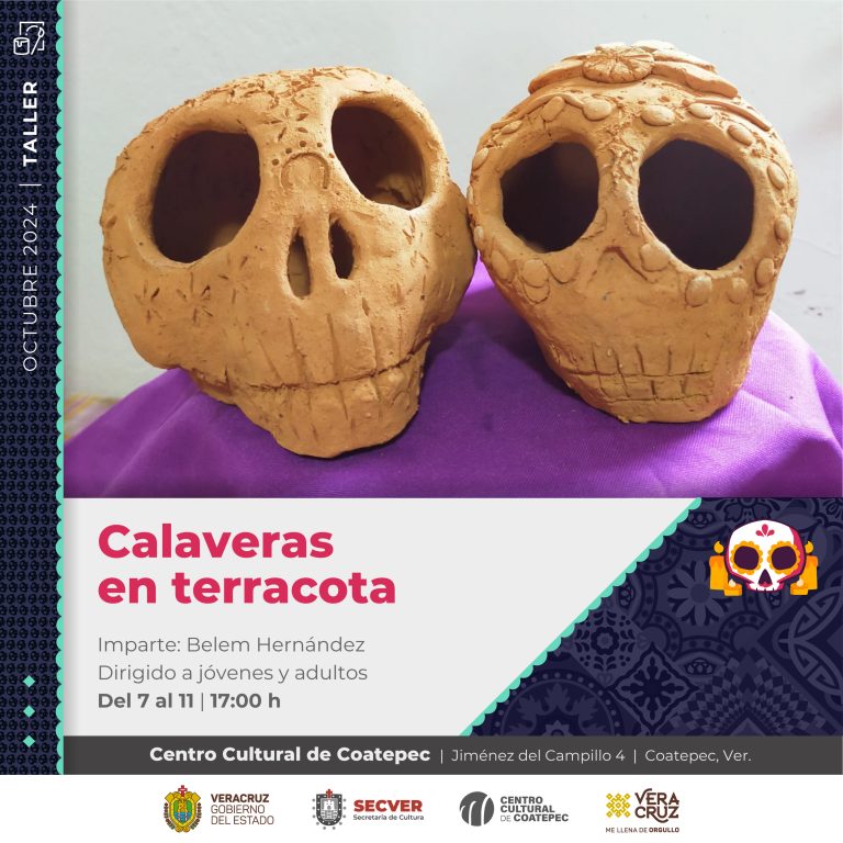 Redacción Xalapa.-La Secretaría de Cultura de Veracruz invitó al público en general al Taller de Calaveras en Terracota en el Centro Cultural de Coatepec, que se oferta este mes de octubre con motivo de las actividades del Día de Muertos.