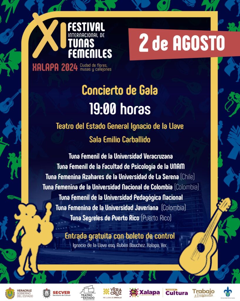 Redacción Xalapa.- La Secretaría de Cultura de Veracruz invitó al público en general a disfrutar del Concierto de Gala del Festival Internacional De Tunas Femeniles en Xalapa.