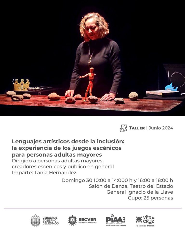 Redacción Xalapa.-La Secretaría de Cultura de Veracruz, por medio de su Programa de Inclusión a través de las Artes (PIAA), invitó a la comunidad a participar en el taller «Lenguajes artísticos desde la inclusión: la experiencia de los juegos escénicos para personas adultas mayores».