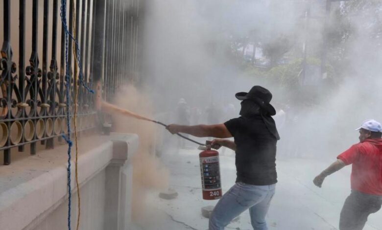 El personal de seguridad utilizó extintores para dispersar a los inconformes.