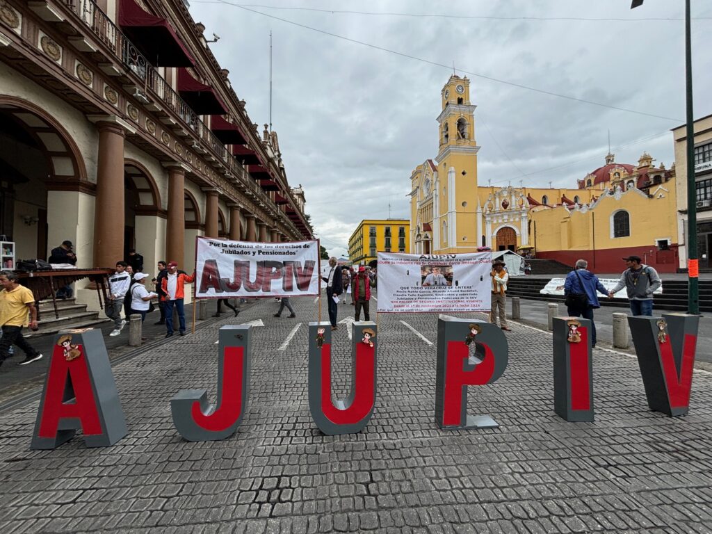 Juan David Castilla.- Los integrantes de la Agrupación Estatal de Jubilados y Pensionados del Issste en Veracruz (Ajupiv) bloquearon como cada jueves el centro de Xalapa, en esta ocasión para dar a conocer que planean manifestarse este viernes en el evento de la presidenta Claudia Sheinbaum Pardo en el puerto de Veracruz.