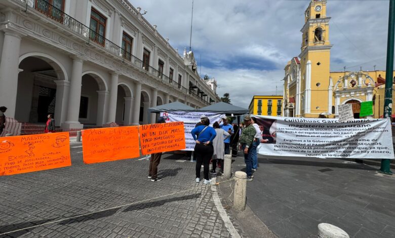 Docentes jubilados iniciaron un plantón indefinido en el centro de la ciudad de Xalapa para exigir el pago de los seguros institucionales que están pendientes desde hace varios años.