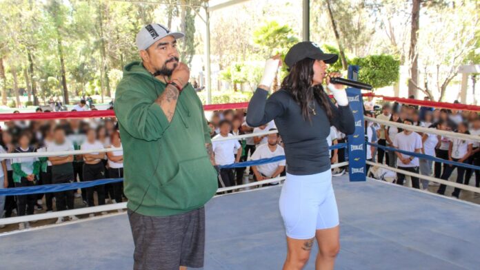 Ante casi 2 mil estudiantes, se realizó la Clase Masiva de Boxeo impartida por la campeona mundial Plata del Consejo Mundial de Boxeo, Gaby “La Bonita” Sánchez, en compañía de su entrenador, Sergio Niño.