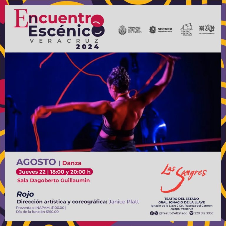 Redacción Xalapa.-La Secretaría de Cultura de Veracruz, invitó al público en general a la presentación dancística Rojo, proyecto de Las Sangres Compañía, que forma parte de la programación del Encuentro Escénico Veracruz 2024.