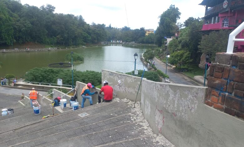Empleados municipales realizaron labores de limpieza y mantenimiento en el Paseo de los Lagos de esta ciudad de Xalapa, uno de los sitios turísticos más importantes de la capital.