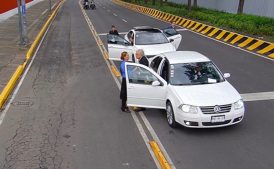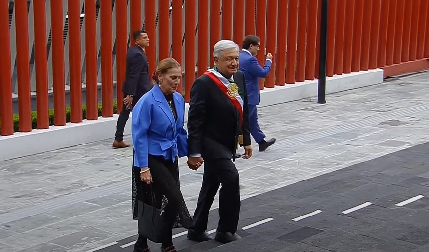 Entre gritos de «Es un honor estar con López Obrador», el presidente de México fue recibido, mientras bajó de su vehículo junto a su esposa.