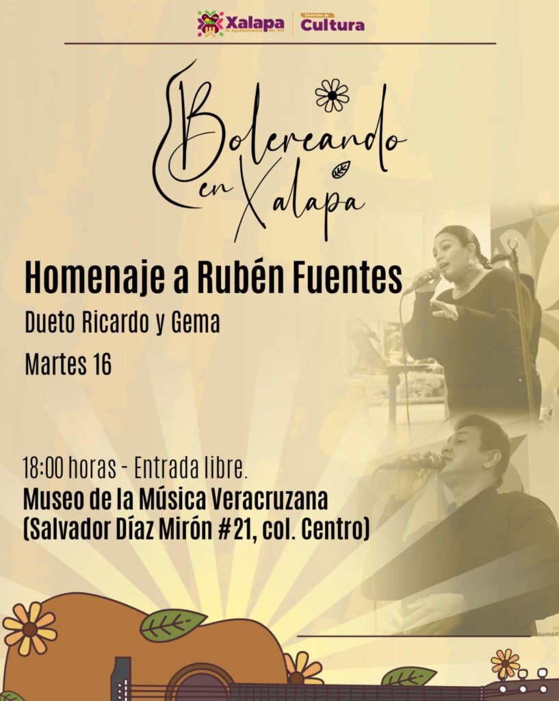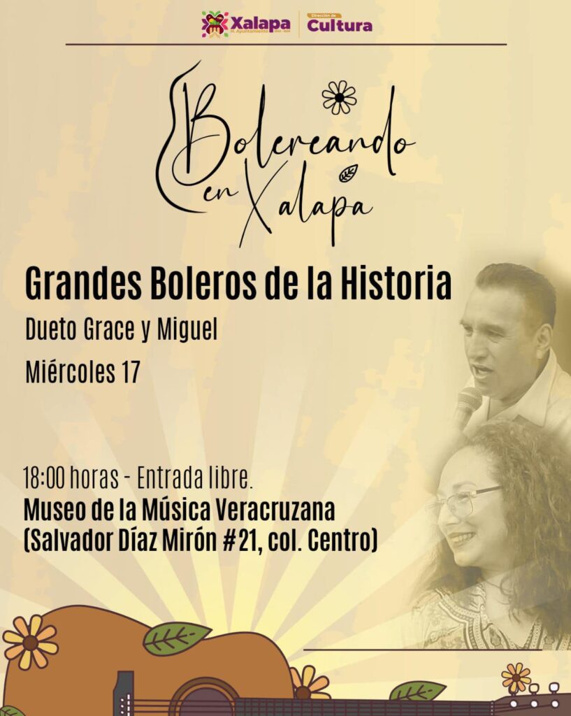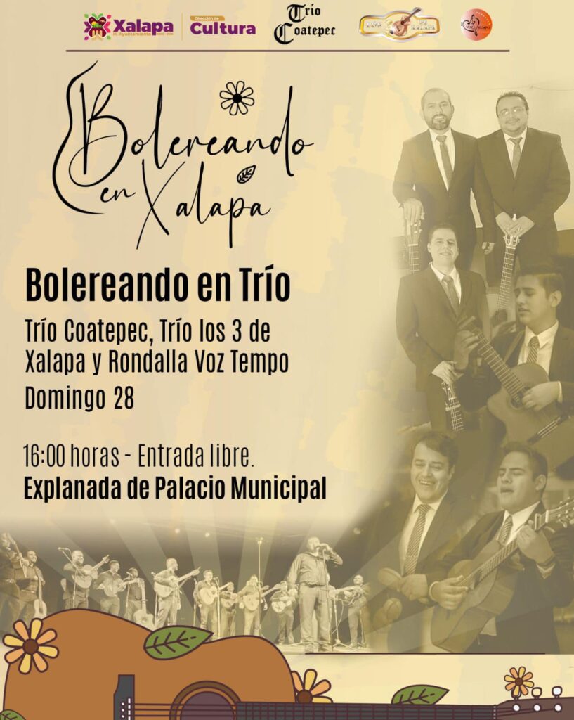 Redacción Xalapa.- El H. Ayuntamiento de Xalapa, a través de la Dirección de Cultura, invitó a las y los xalapeños a disfrutar de «Bolereando Xalapa», el cual presentará una serie de conciertos para celebrar este género musical que considerado Patrimonio Cultural Inmaterial de la Humanidad.