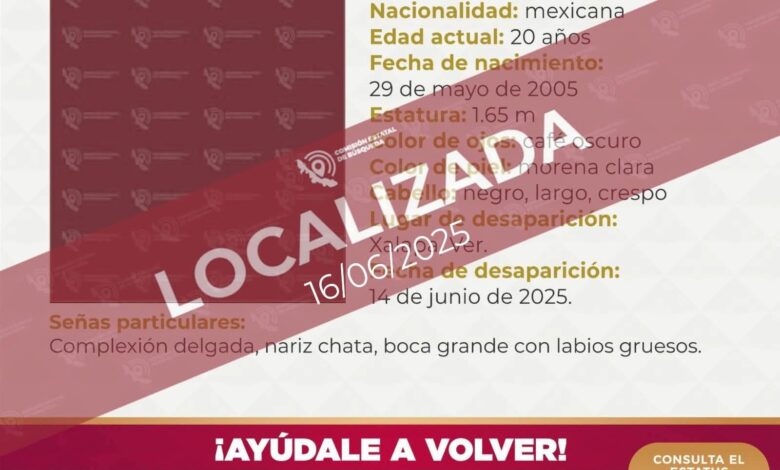 “Como resultado de las diligencias realizadas por elementos de la Policía Ministerial, se logró su ubicación, confirmándose que se trató de una ausencia voluntaria”, explica el comunicado.